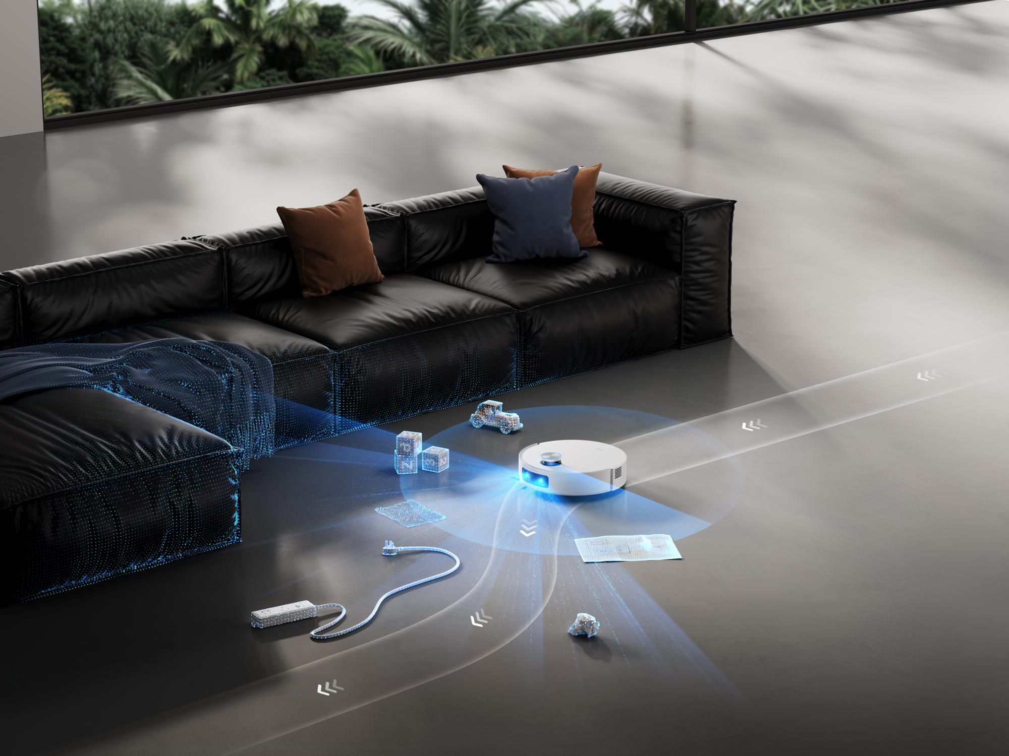 ProLeap™ System features Robotic Retractable Legs, which lift the chassis, allowing the robot to navigate complex terrains like door sills and small steps. This advanced system prevents the vacuum from getting stuck, ensuring seamless and efficient cleaning.