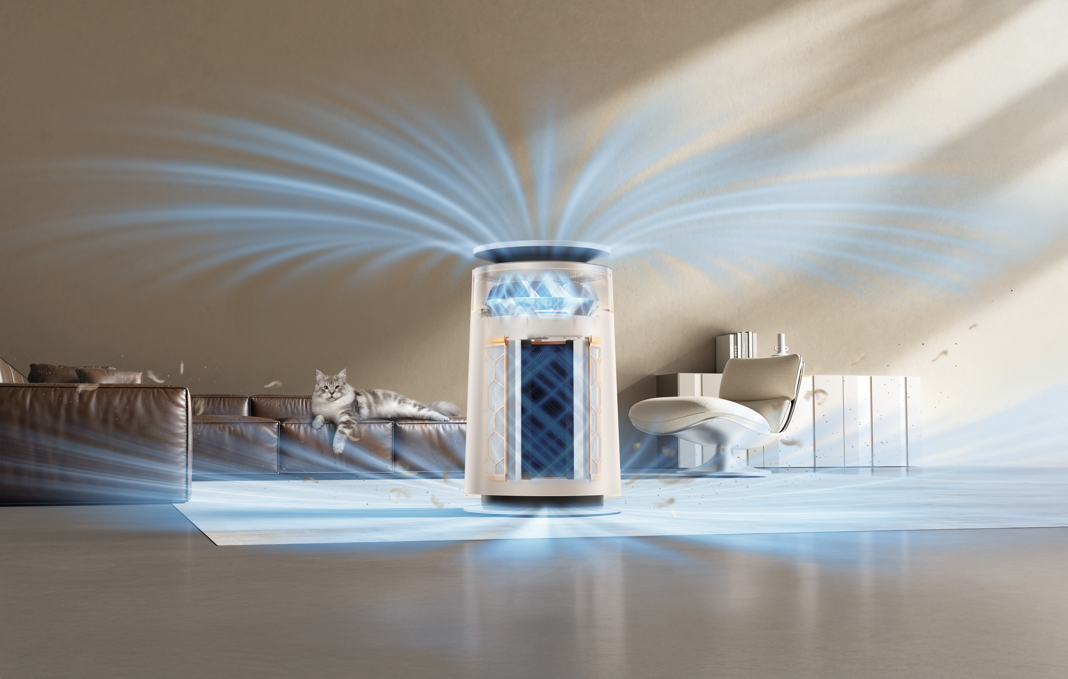 The grille-free circulation-boosting airflow enhances air circulation, quickly capturing floating hair and dust, solving common pet-related air issues