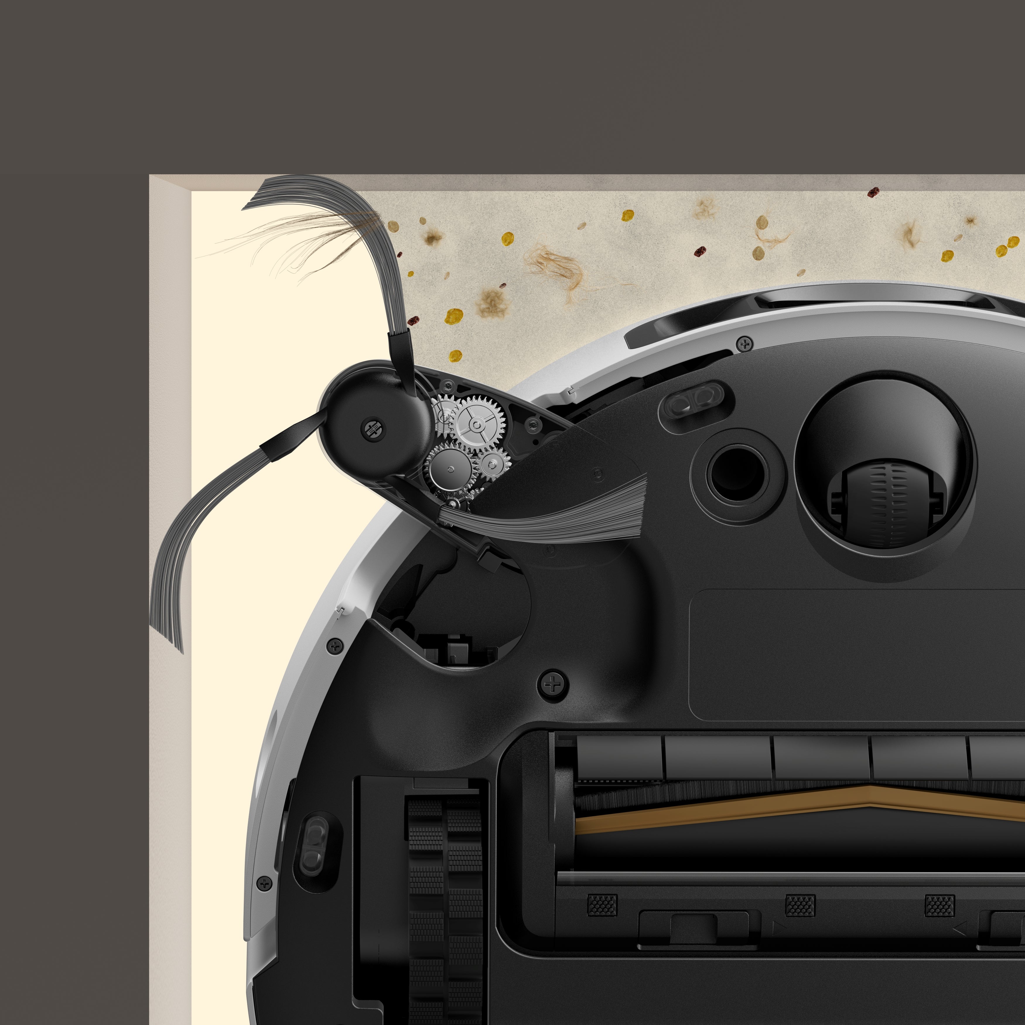 L50 Ultra AE features an extendable side brush designed to capture dust from right-angle corners, beneath curved furniture, and in hard-to-reach spaces. This helps achieve comprehensive corner coverage and cleaner edges along walls and furniture bases.