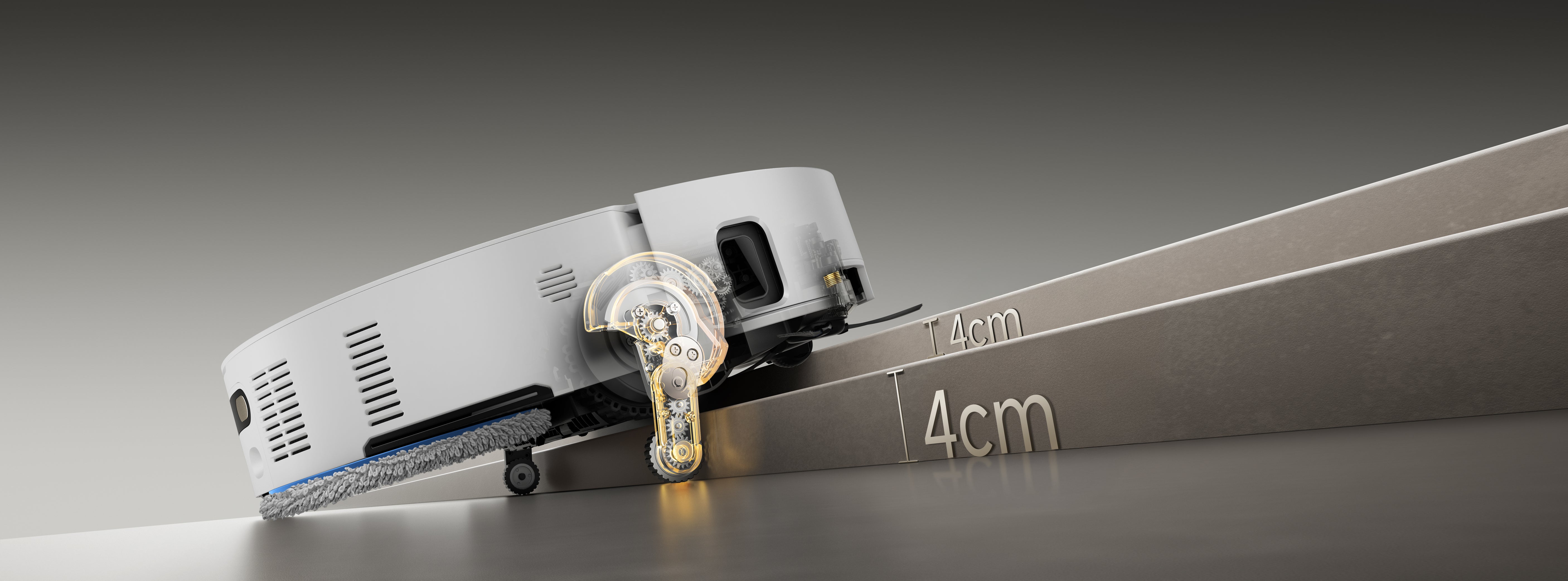 The robot vacuum features a set of a retractable leg and a swinging arm in front of each drive wheel for clearing single-layer steps up to 4.2cm and double-layer ones up to 8cm*.
