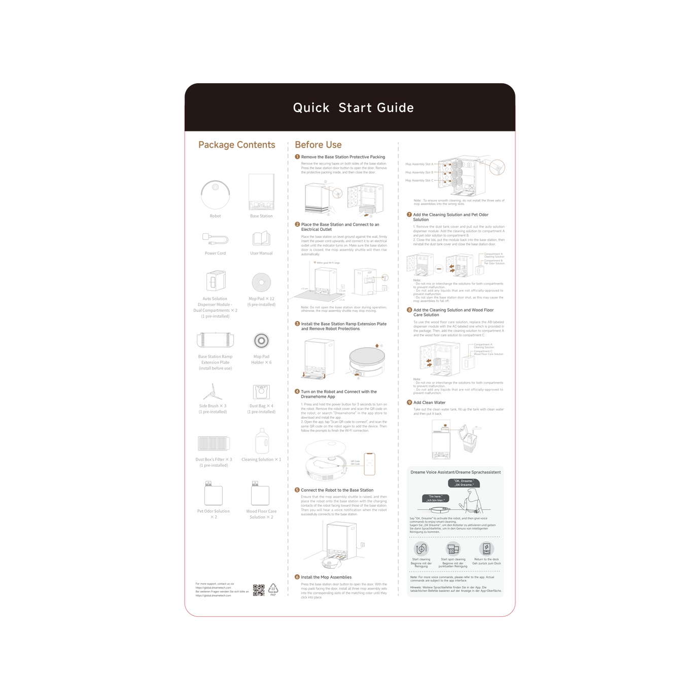 The Three-solution compartment contains three solutions: one is a pet odor solution, one is a wood floor care solution and one is a floor cleaning solution. Say goodbye to single cleaning modes; multi-solution compartment covers a broader spectrum of cleaning needs.