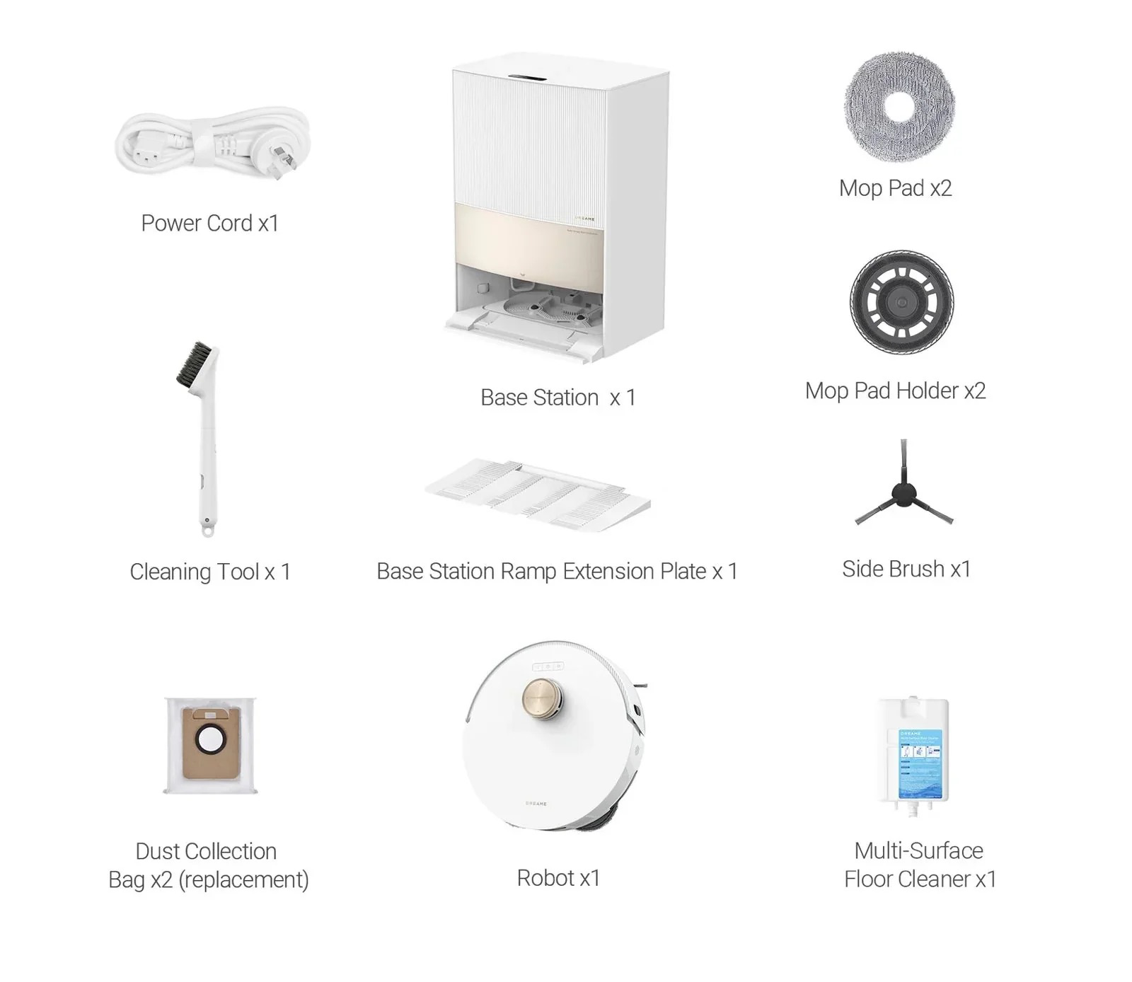 3.300m2(3.229ft2):Based on tests in Dreame's lab. 4.Water Hookup Kit for Auto Refilling and Draining:Purches eperately. Support in some regions.