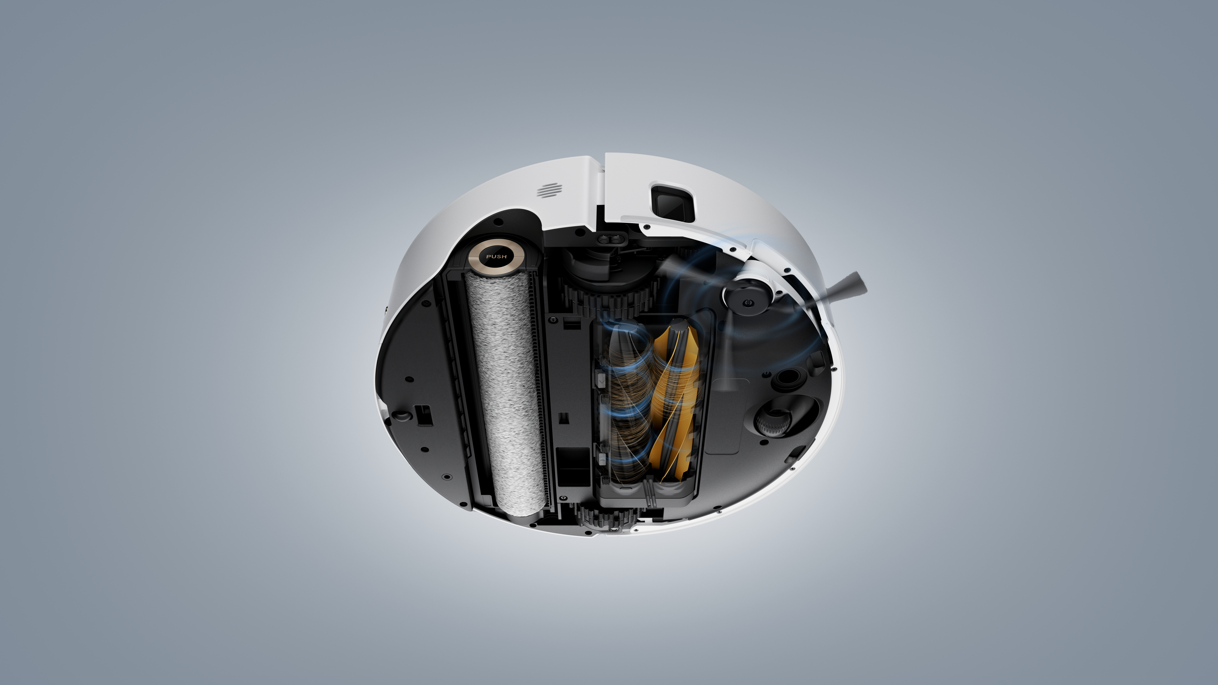 Inovatyvi dviejų priešingai besisukančių guminio ir visiškai guminio TPU šepečių sistema. Išmanus oro srauto dizainas leidžia efektyviai pašalinti net iki 30 cm ilgio plaukus*, abu šepečiai dirba kartu, ir 100 % užtikrina, kad plaukai nei nuo grindų nei nuo kilimų neįsipainios*.