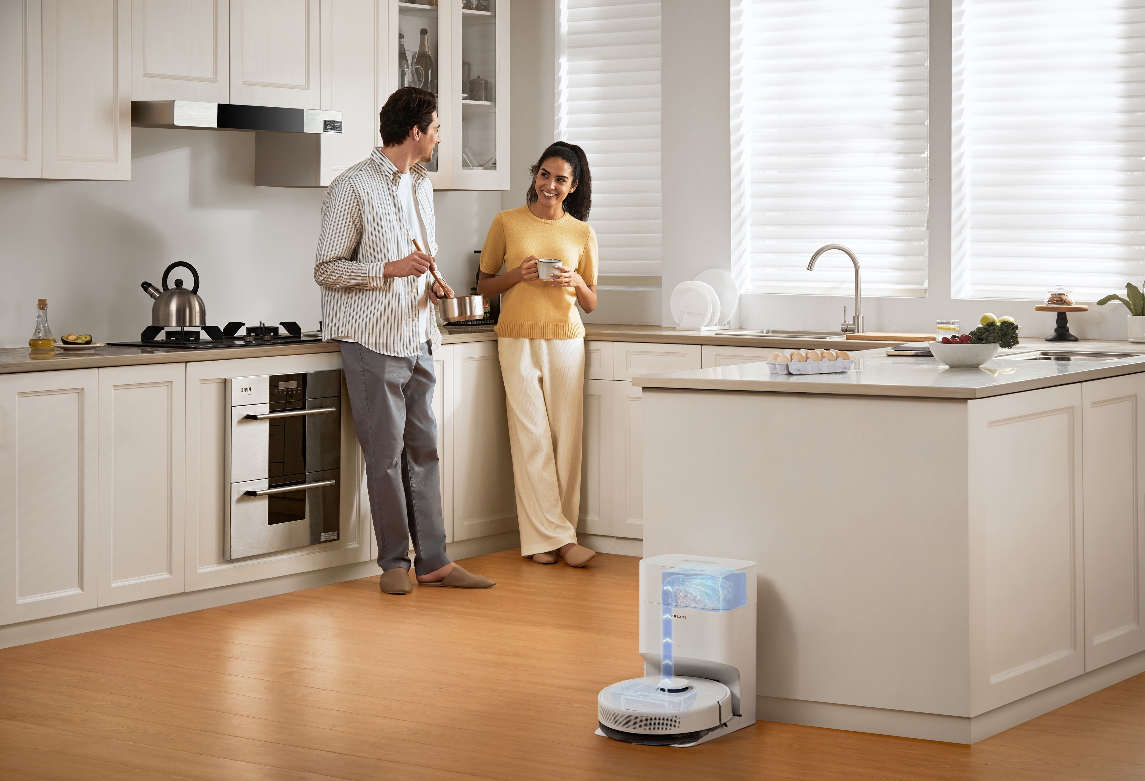 Naudodami mūsų dulkių surinkimo sistemą „Set-and-Forget“ (nustatykite ir pamirškite), valykite be rankų. Sistema veikia automatiškai, todėl iš esmės pakeičia jJūsų kasdienybę ir išsprendžia dulkių šalinimo problemas. Dėl talpaus 4 l talpos dulkių maišelio galite mėgautis iki 90 dienų* nepertraukiamu patogiu valymu.