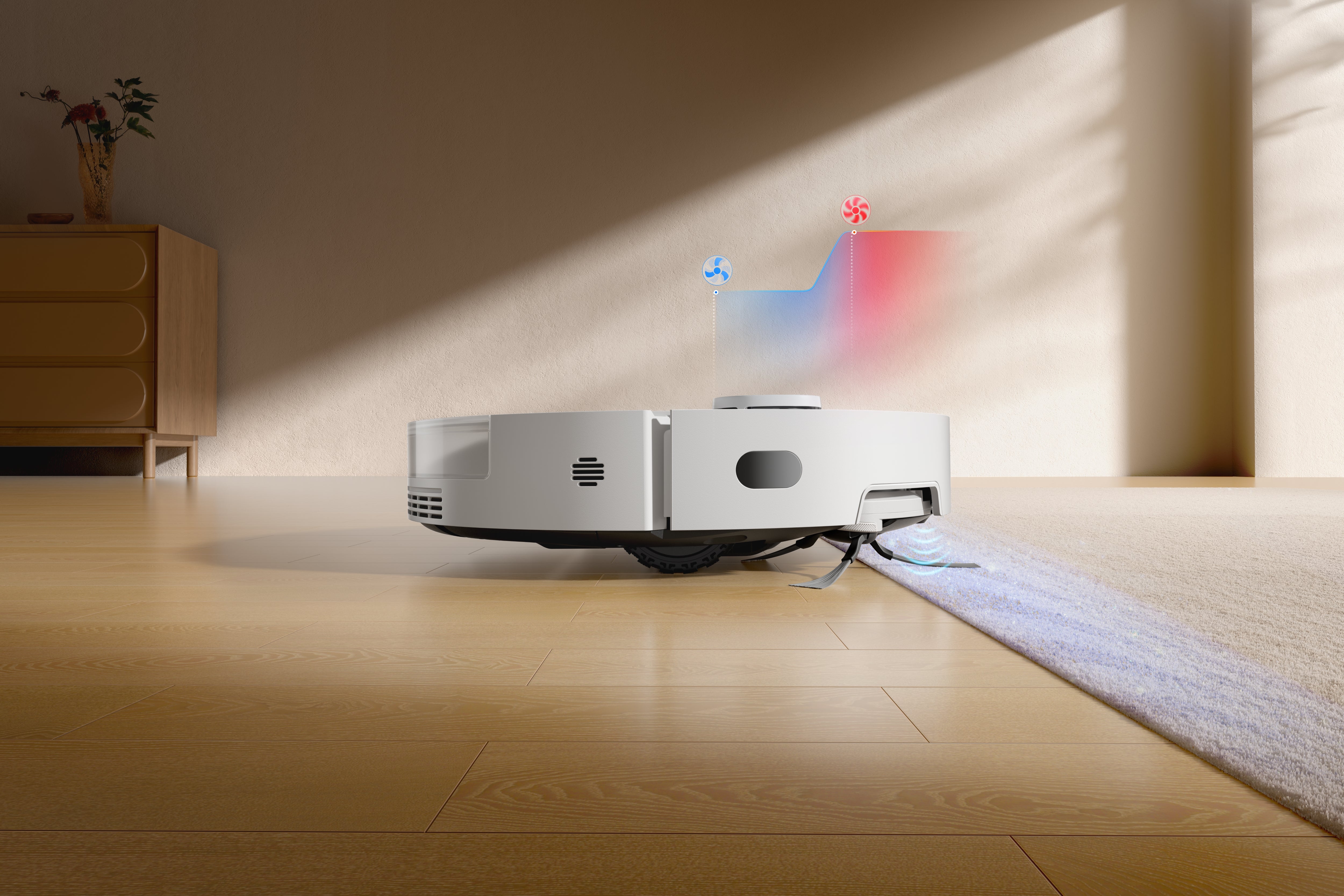 Kai robotas užvažiuoja ant kilimo, įsijungia automatinis režimas, kuris padidina siurbimo galią ir užtikrina, kad net giliausiai esančios dulkės būtų pašalintos.
