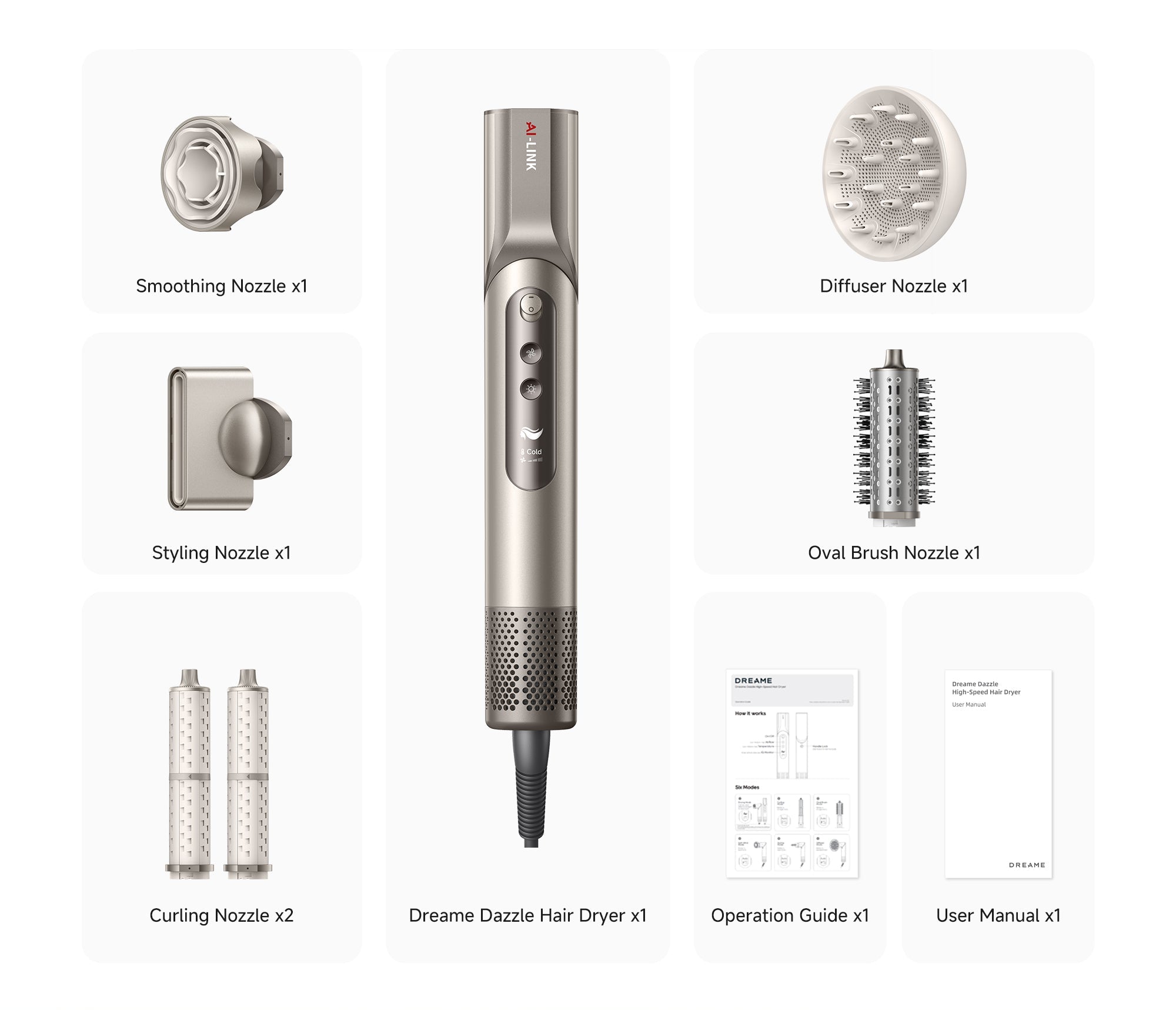 Vos pridėjus norimą antgalį, džiovintuvas automatiškai atpažįsta jo tipą ir aktyvuoja tinkamiausią režimą. Naudokitės galingu oro srautu ir formuokite norimą šukuoseną itin profesionaliai ir tiksliai, tiesiog savo vonios kambaryje.