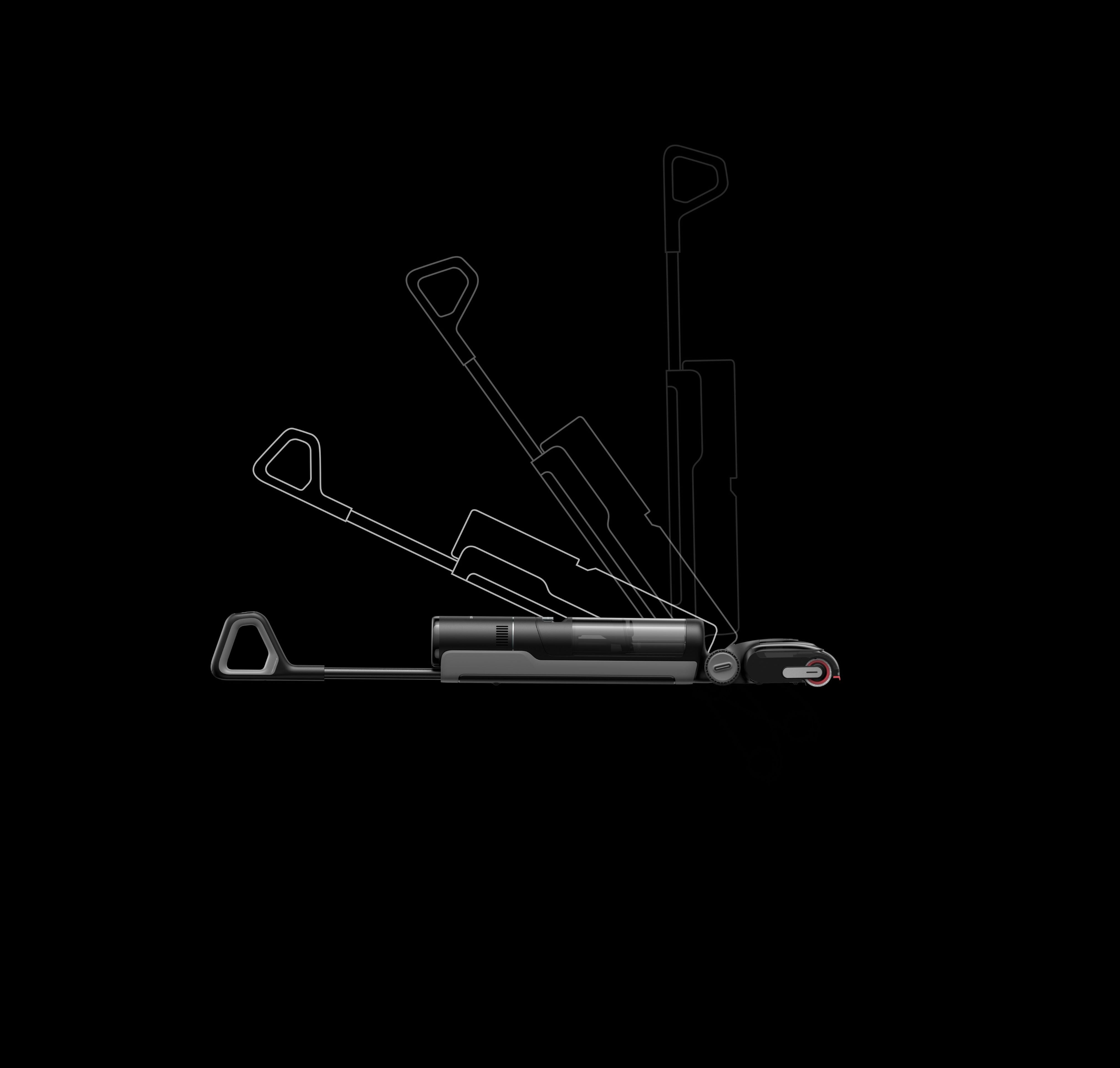 H15 Pro atsilenkia visiškai iki 180° kampo ir tobulai priglunda prie grindų, kadangi gali tilpti į 14 cm erdves (korpusas ir šepetėlio galvutė užima 9,6 cm).*. Tam, kad nebūtų pažeistas pagrindinis variklis ir H15 Pro galėtų išlaikyti iki 21 000 Pa* siurbimo galią valydamas po lovomis ir sofomis, nešvarus vanduo saugiai laikomas panaudoto vandens rezervuare.