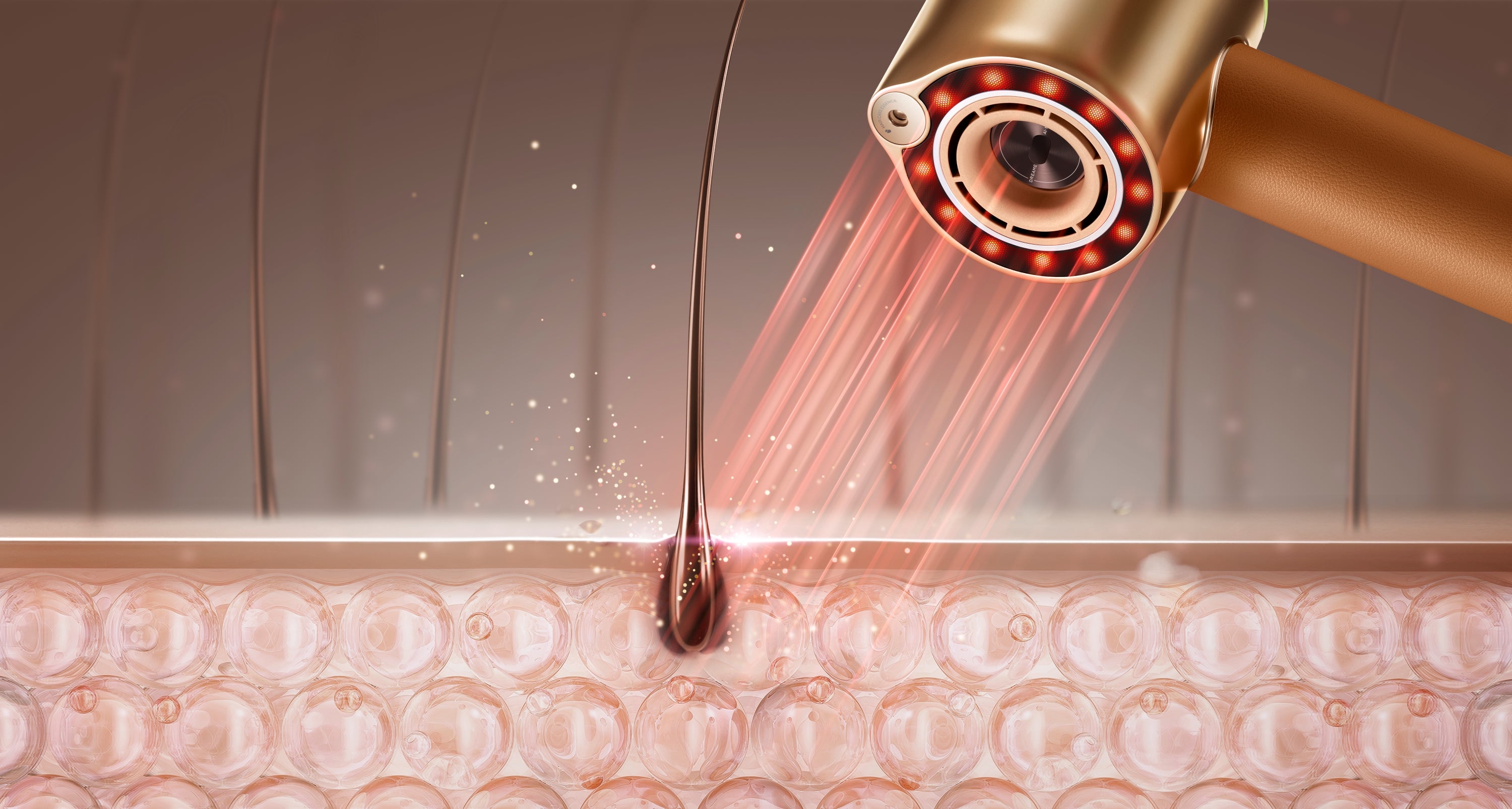 Specialus atomizacijos modulis paverčia esenciją į itin smulkius lašelius, kurie lengviau įsiskverbia į plauką ir užtikrina geresnį veikliųjų medžiagų įsisavinimą.