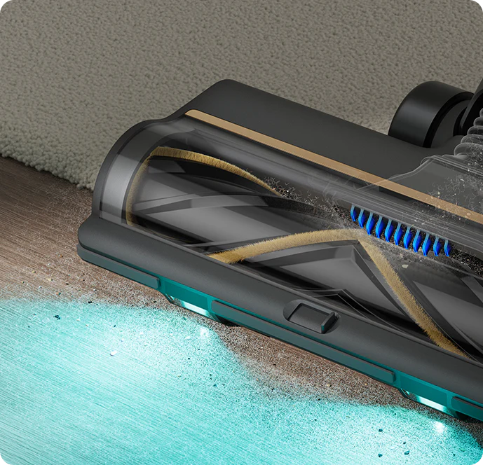 Įvairių paviršių šepetys su žydra šviesa apšviečia paslėptas dulkes prietaisui valant kilimus ir grindis. Šepetys veiksmingai išvalo plaukus, sumažina susikaupimo tikimybę, taip pat be vargo surenka stambias daleles visapusiškai valydamas.