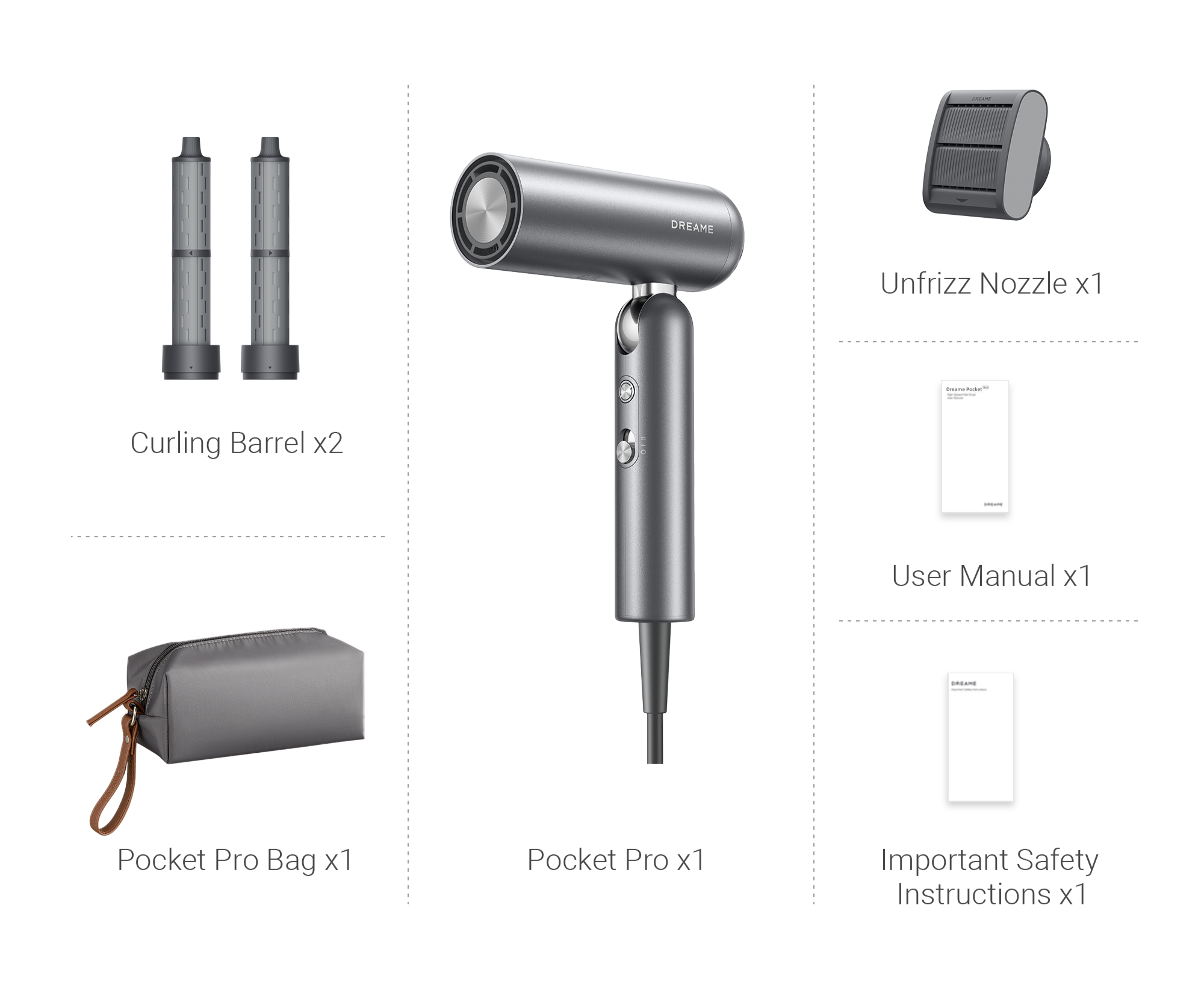 Pocket Pro generuoja net 300* milijonų neigiamų jonų kiekviename cm³ – jie užveria plauko kutikulę, sulaiko drėgmę ir suteikia glotnumo bei natūralaus žvilgesio.