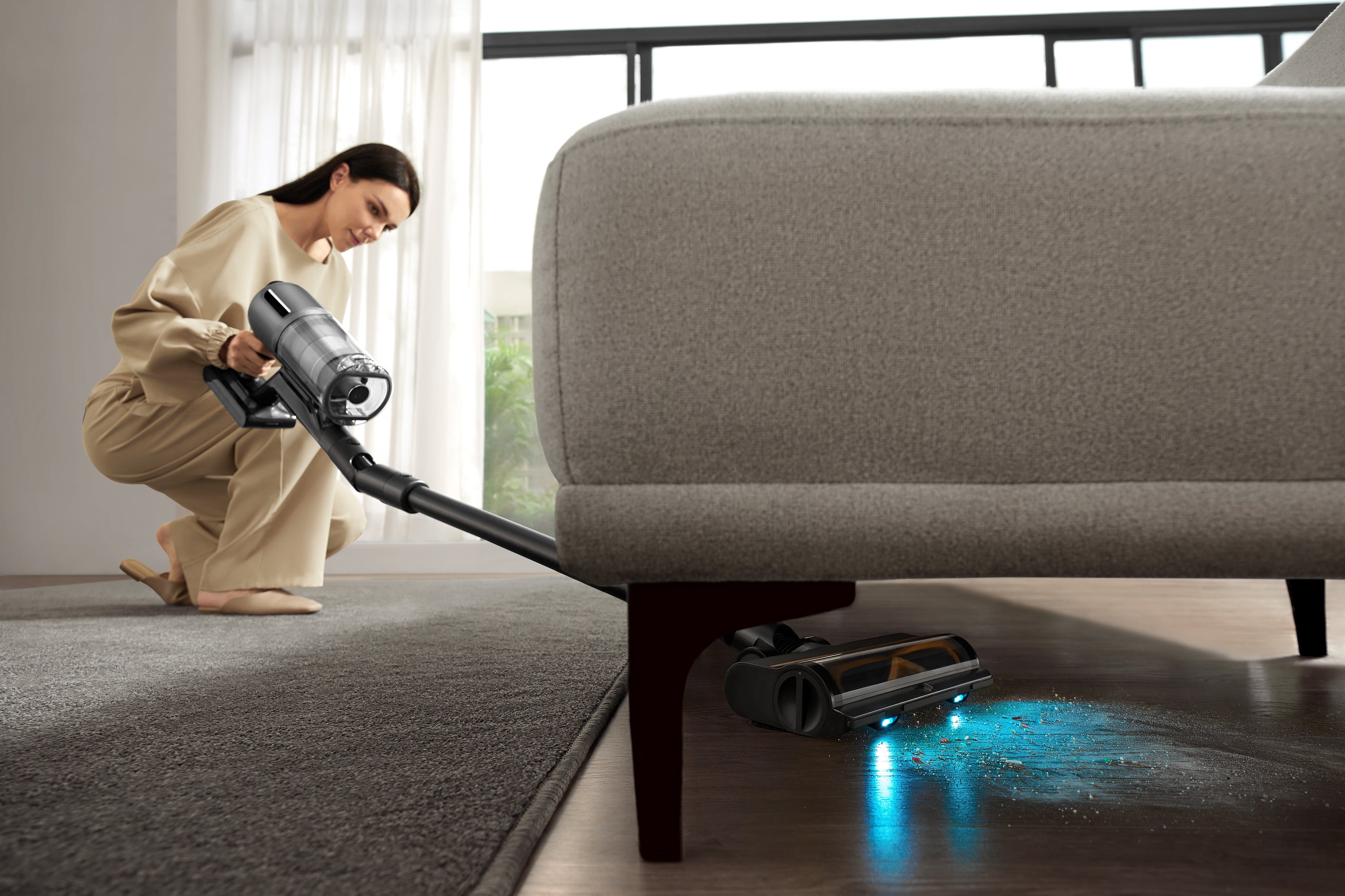 Didelė 400 ml* švaraus vandens talpa užtikrina pastangų nereikalaujantį iki 390 ㎡* ploto namų valymą ir suteikia nuolatinę bei nepertraukiamą valymo patirtį, pagerina efektyvumą ir veiksmingumą gyvenamosios paskirties vietose.